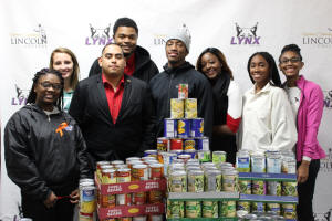 with canned food donations (from left): Alexis Kennedy (St. Louis,