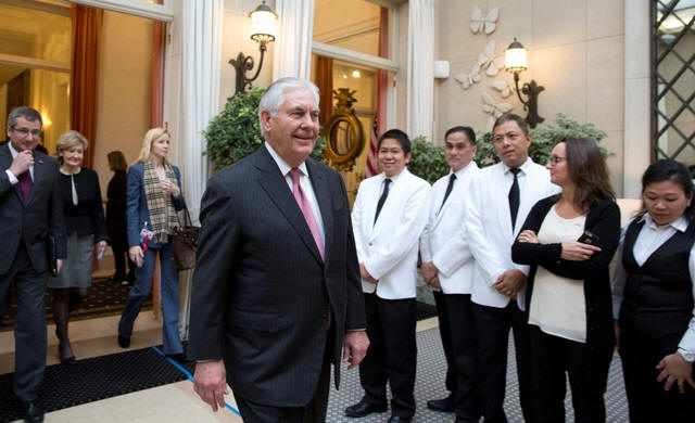 U.S. Secretary of State Rex Tillerson arrives at the U.S. Embassy in