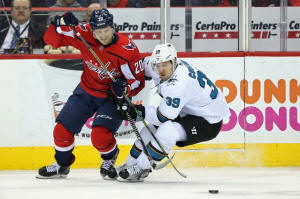 in the second period after a hit by San Jose's Joe Thornton as Oshie