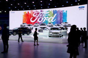 Visitors look at Ford models at Auto Guangzhou in Guangzhou, China