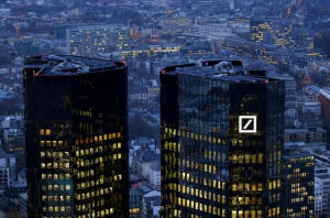 The headquarters of Germany's Deutsche Bank is seen early evening in
