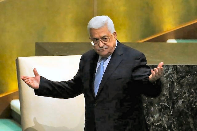 Palestinian President Mahmoud Abbas greets delegates after