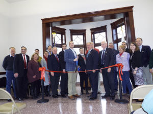 red ribbon for the cutting ceremony. Those who came forward included