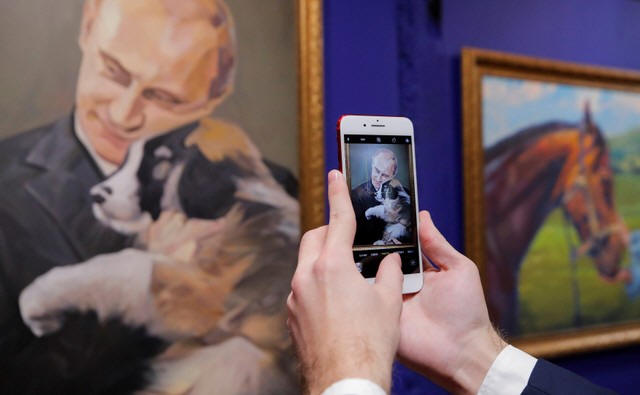 around 30 paintings and sculptures of the Russian leader in a