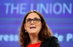 European Trade Commissioner Cecilia Malmstrom addresses a news