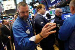 Traders work on the floor of the New York Stock Exchange shortly
