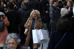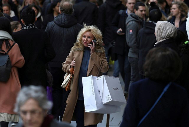 A shopper speaks on her mobile phone as she walks along Oxford Street in London, Britain December 3, 2016. REUTERS/Neil Hall/File Photo |