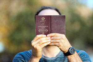 Alireza, an Iranian refugee living in Turkey, holds his passport in