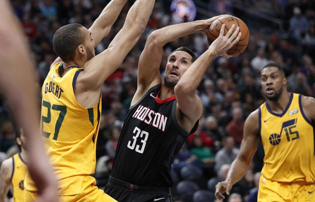 Rockets forward Ryan Anderson (33) looks to shoot against Utah Jazz