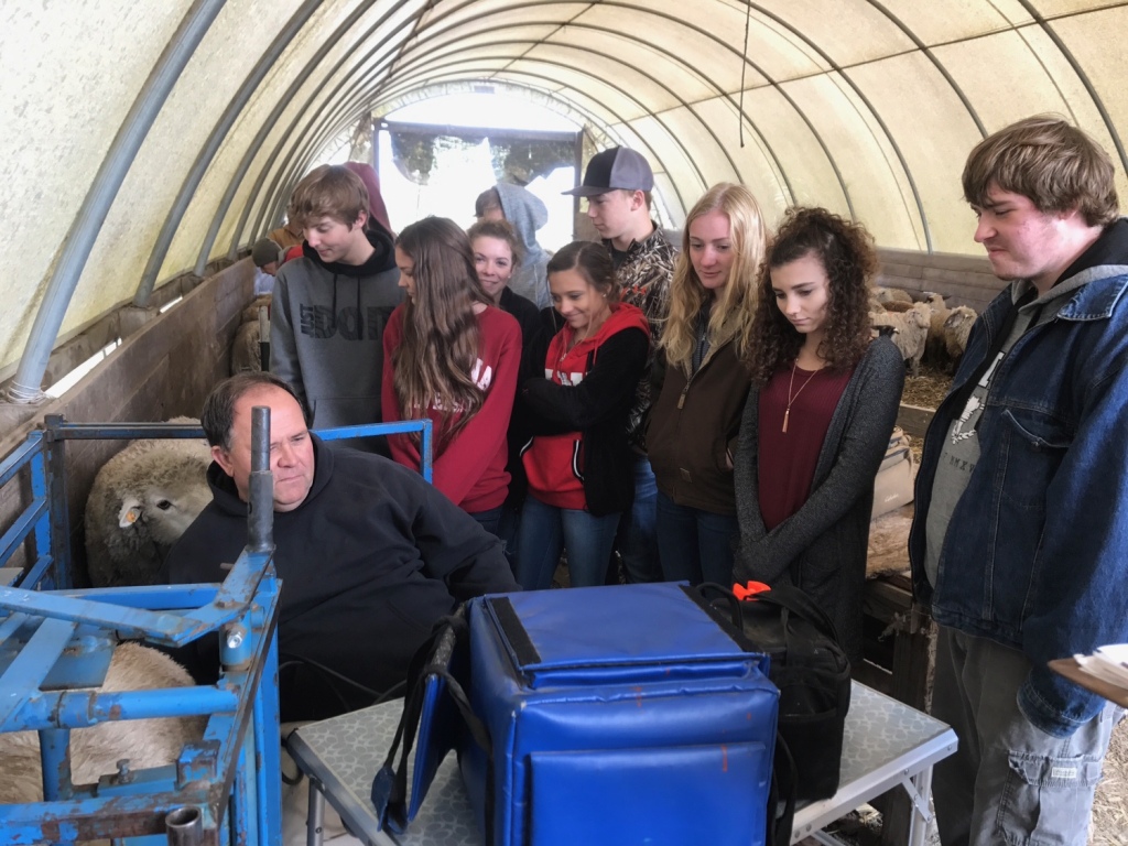 use of a sheep cradle and hoof trimmers. Students were happy to be