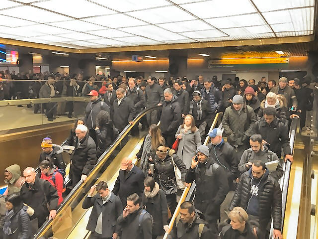 the city's busiest commuter hubs in midtown Manhattan, during Monday