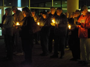 As candles were being lit, Sarah Helm read the poem