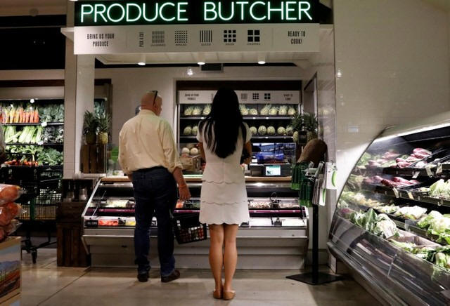 Customers shop at a Whole Foods store in New York City, U.S., August