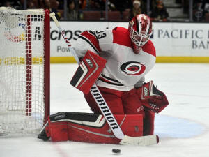 Hurricanes goalie Scott Darling (33) blocks a shot against the
