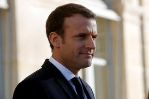 French President Emmanuel Macron welcomes guests for a lunch at the