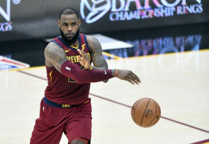 Cavaliers forward LeBron James (23) throws a pass in the fourth