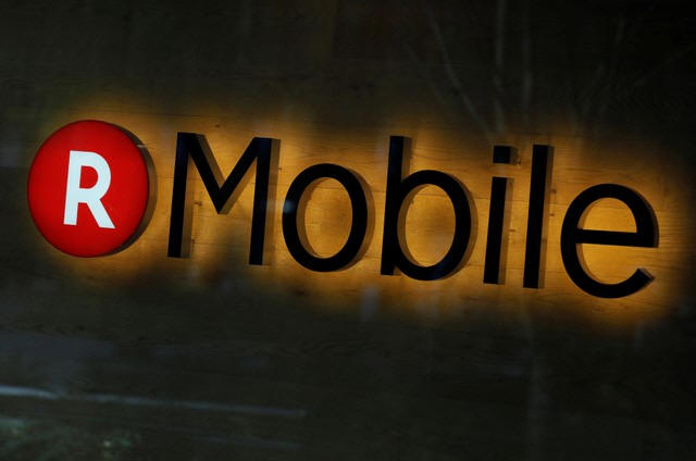 The logo of Rakuten Mobile is seen at its branch in Tokyo, Japan