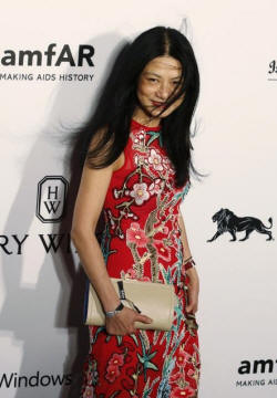 Hong Kong fashion designer Vivienne Tam poses upon arrival at the