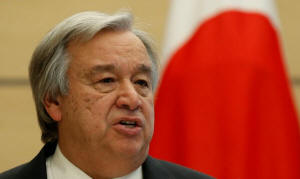 U.N. Secretary-General Antonio Guterres attends a joint news