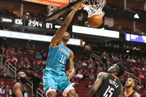 Charlotte Hornets center Dwight Howard (12) dunks as Houston Rockets
