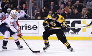 Bruins left wing Brad Marchand (63) and Washington Capitals right