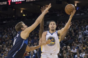 Warriors guard Klay Thompson (11) shoots the basketball against
