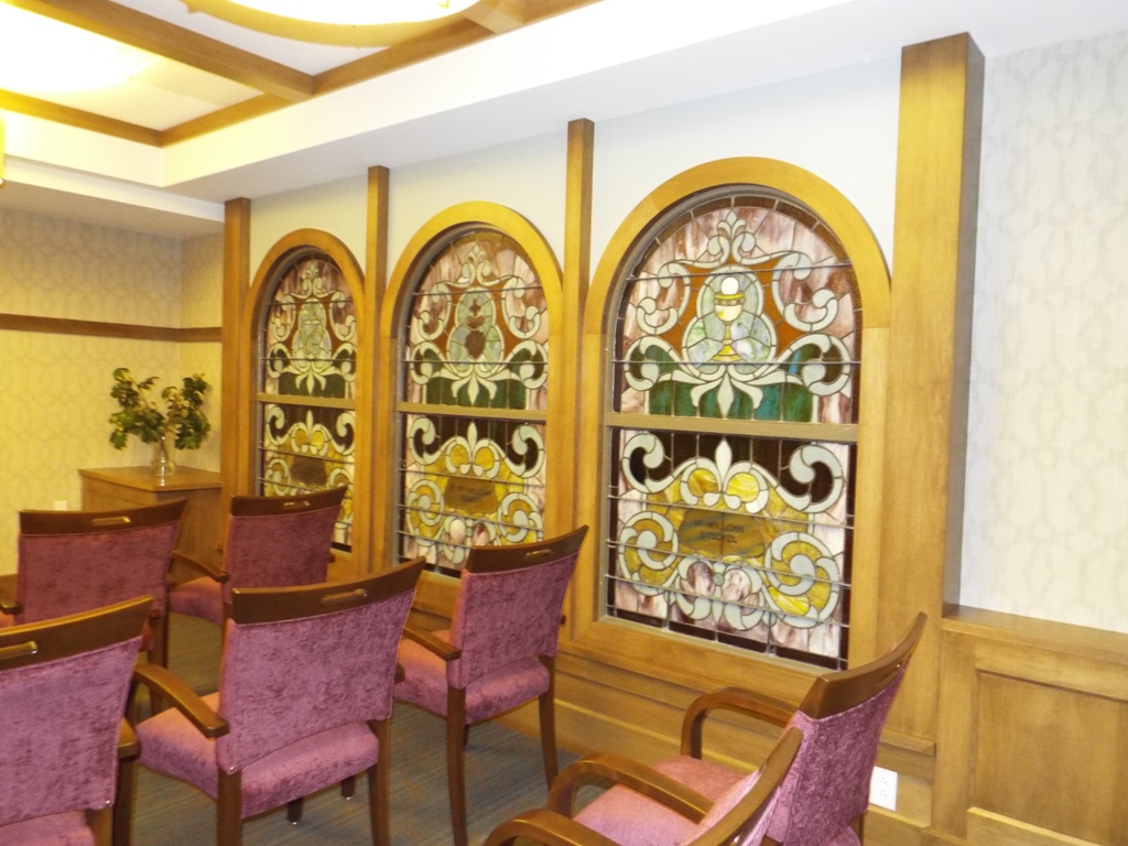 On Thursday evening, the windows were found beautifully accenting the Chapel at the new facility.