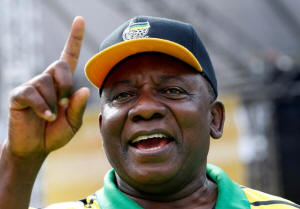 South Africa's Deputy President Cyril Ramaphosa gestures at an