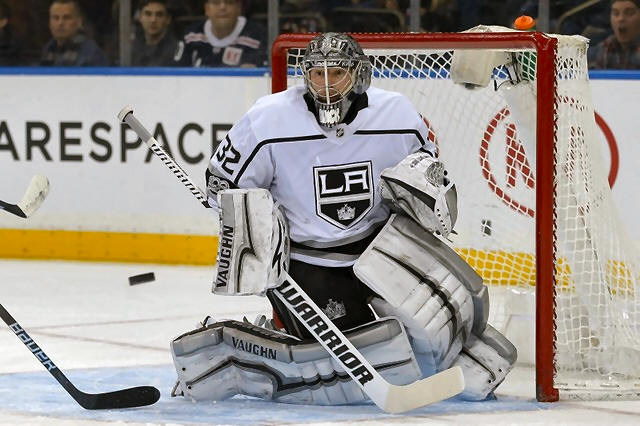 Kings goalie Jonathan Quick (32) makes a save against the New York