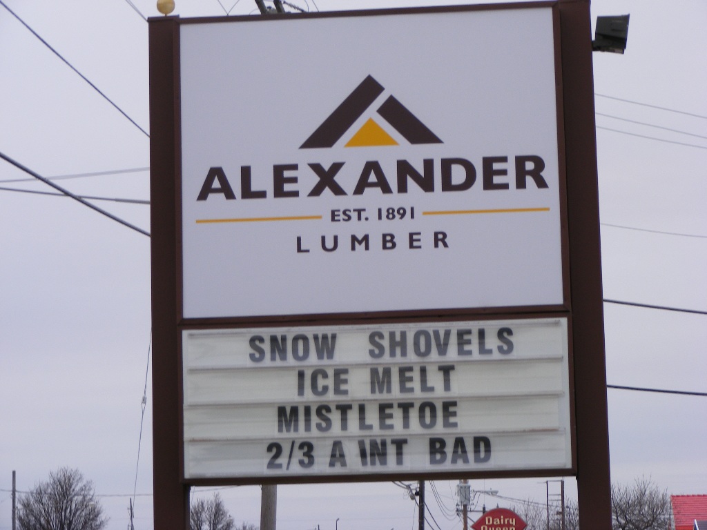 the sign says, "two outa three ain't bad."