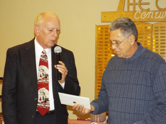 Dalpoas receives a gift from Larry Howen