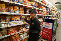 employee loads a cart for a customer who has used Kroger's