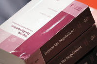 Copies of tax legislation are seen during a markup on the "Tax