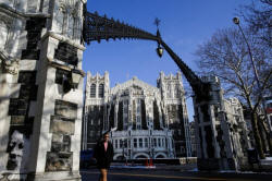 A man walks the campus of the City College of New York in the Harlem