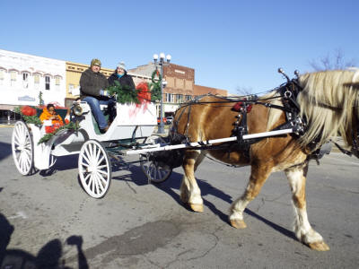 The couple manned the reins while up to six riders took the back seat for a leisurely trip around the historic Logan County Courthouse square.