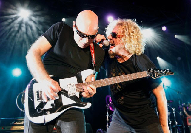Chickenfoot guitarist Joe Satriani (L) performs with singer Sammy