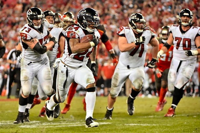Falcons running back Devonta Freeman (24) runs the ball for a