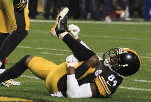 Pittsburgh Steelers wide receiver Antonio Brown (84) grabs his leg