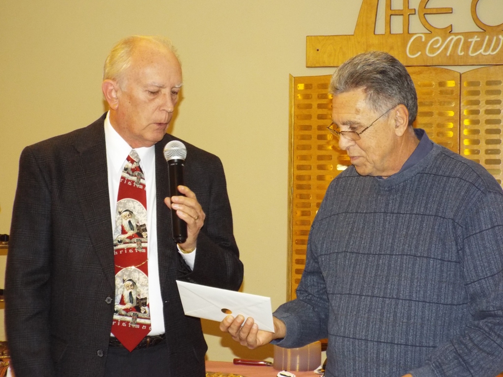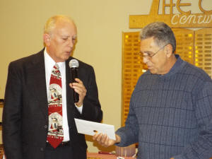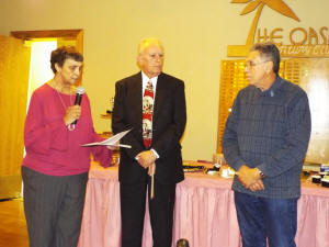 She turned the microphone over to Larry Howen, who presented Dalpoas with a card containing a bonus check. Howen said, “On behalf of the board we have this presentation for you, for all the work you have done over and above what we normally expect of someone. You went out of your way to make the Oasis what it is today, one of the premier senior centers in the state, and we thank you for all that.”