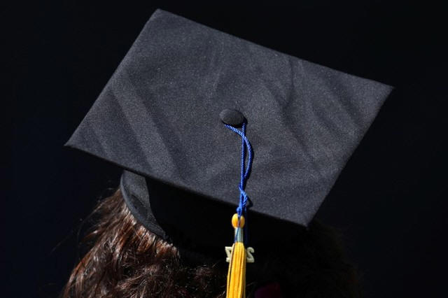 The top of the cap of a graduating student is pictured during their