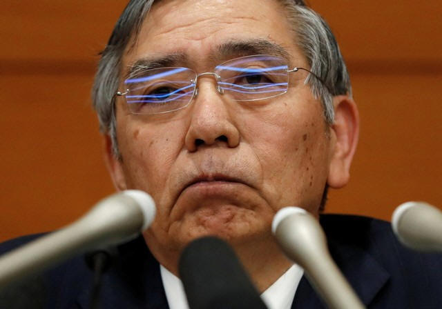 Bank of Japan (BOJ) Governor Haruhiko Kuroda attends a news