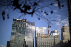 Construction cranes are seen in the Los Angeles skyline in downtown