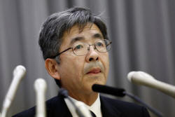 Kobe Steel Executive Vice President Naoto Umehara attends a news