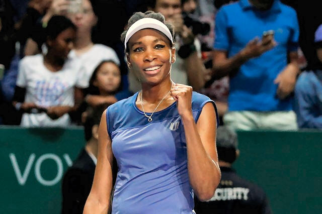 USA's Venus Williams celebrates winning her semi final match against