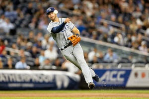 Tampa Bay Rays third baseman Evan Longoria (3) throws out New York