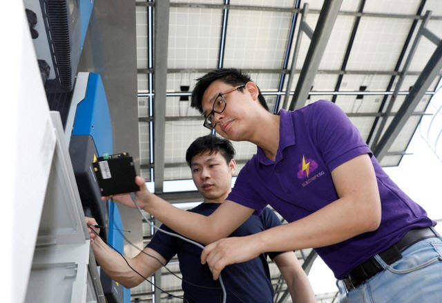 An Electrify SG engineer shows how a PowerPod is installed to record