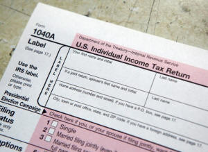 A tax form is pictured on tax deadline day at the main Post Office