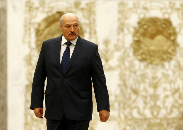 Belarussian President Alexander Lukashenko walks at the Independence