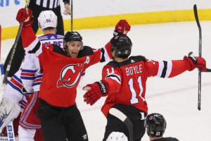 Devils center Travis Zajac (19) and center Brian Boyle (11)