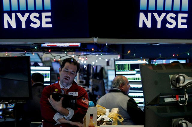Traders work on the floor of the New York Stock Exchange, (NYSE) in